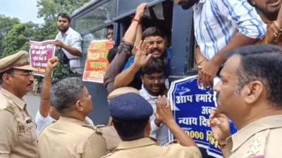 भोपाल में हंगामा: प्रदर्शनकारी शिक्षक भर्ती अभ्यर्थियों को पुलिस ने हिरासत में लिया
