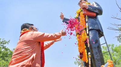 मुख्यमंत्री भजनलाल शर्मा ने संविधान निर्माता डॉ. भीमराव अंबेडकर की प्रतिमा पर पुष्पांजलि अर्पित की