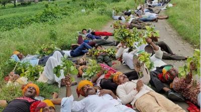अनोखे अंदाज़ में किसानों का विरोध, सूखी फसल लेकर सड़क पर लेटे – तस्वीरें वायरल, सिस्टम पर सवाल