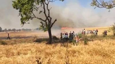 हरदा में खेतों में लगी भीषण आग: 50 एकड़ गेहूं की फसल जलकर राख