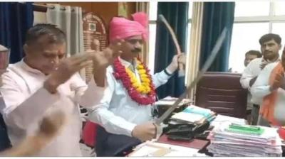 कलेक्टर ने पगड़ी पहन दिखाई तलवार, सियासी गलियारों में मचा हंगामा