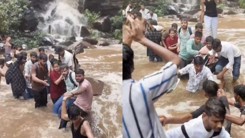निदान फॉल में बढ़ा पानी, बहे सैलानी – रेस्क्यू ऑपरेशन में सभी सुरक्षित