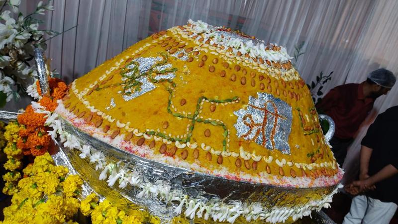 श्रद्धालु ने भगवान गणेश को तीन क्विंटल का राजनीतिक लड्डू किया भेंट