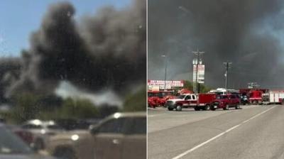 टेक्सास में क्रैश होने के बाद ट्रकों पर गिरा प्लेन, लगी भीषण आग