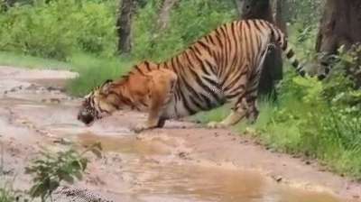 गर्मी में टाइगर की भी परेशानी, मंडला में चिल्ड वाटर पीते हुए दिखे