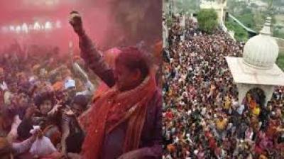 होली का अनोखा रूप: राधारानी मंदिर में लड्डू‑गुलाल उत्सव