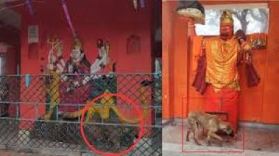 मां दुर्गा की मूर्ति के चारों ओर घूमता रहा कुत्ता